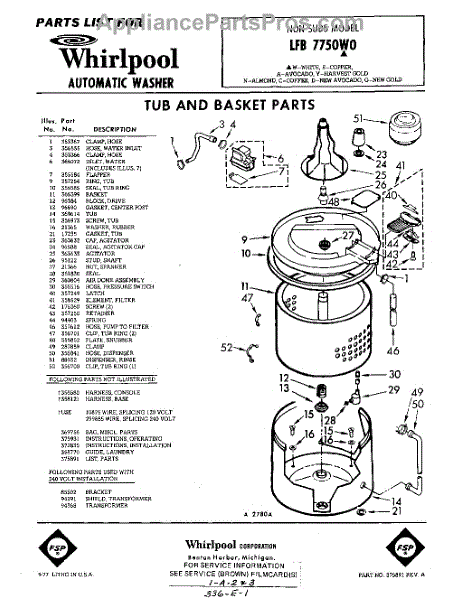 Parts for Whirlpool LFB7750W0: 01 - Tub And Basket , Lit / Optional Parts