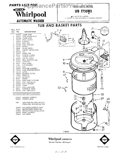 Parts for Whirlpool LFB7750W3: 01 - Tub And Basket , Lit / Optional Parts