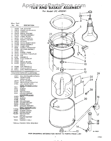 Parts for Whirlpool LFC4900W1: 07 - Tub And Basket , Lit / Optional Parts