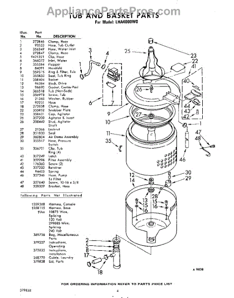 Parts for Whirlpool LHA4000W0: 04 - Tub And Basket , Lit / Optional Parts