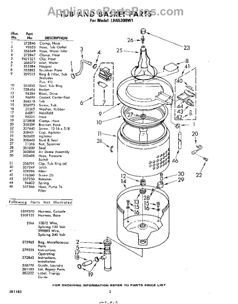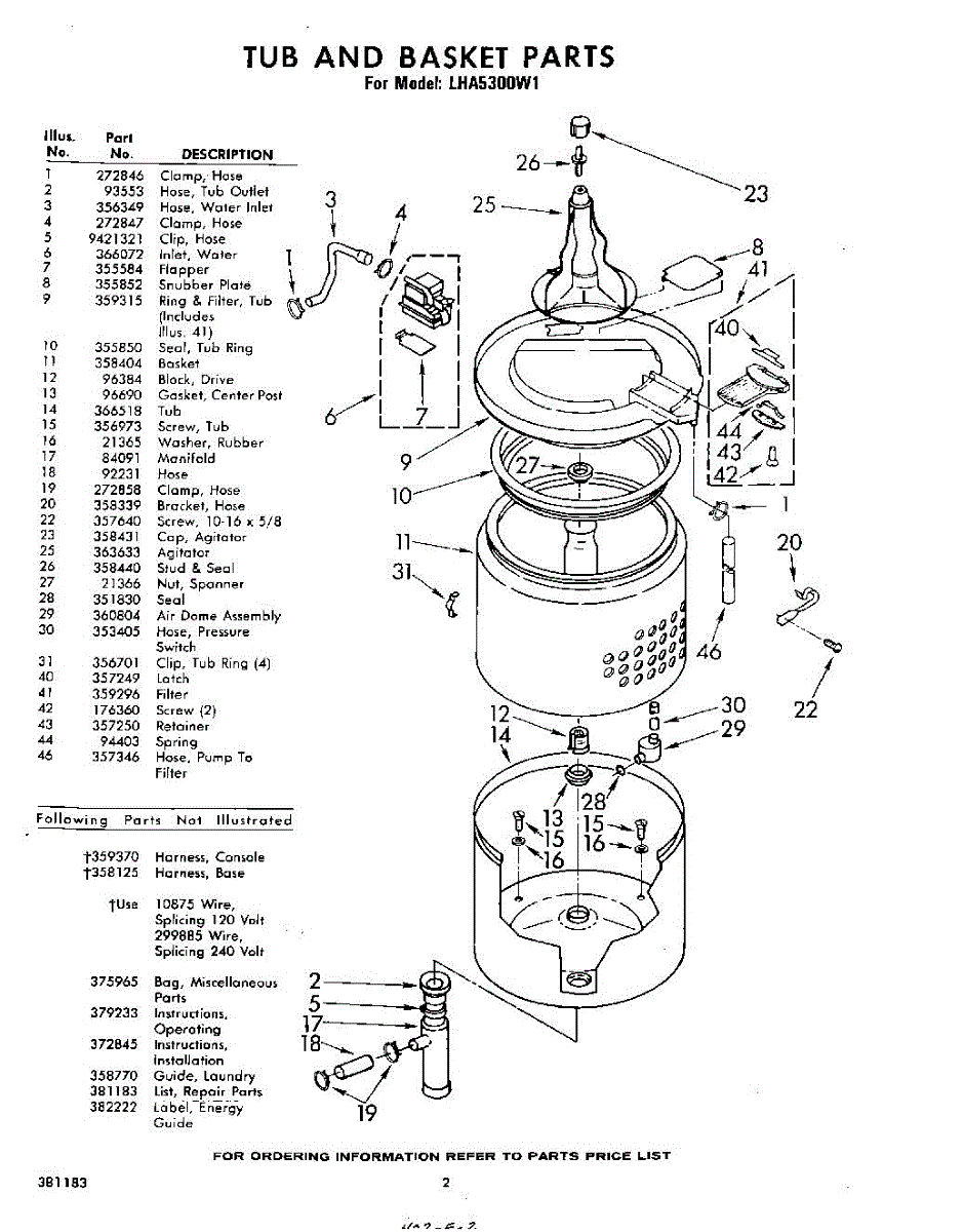 Parts for Whirlpool LHA5300W1: 02 - Tub And Basket , Lit / Optional Parts