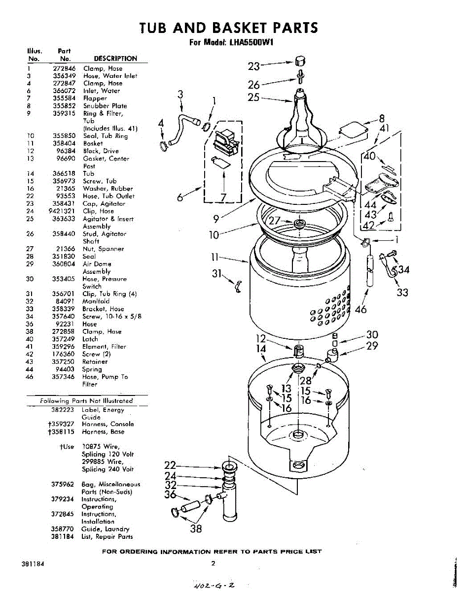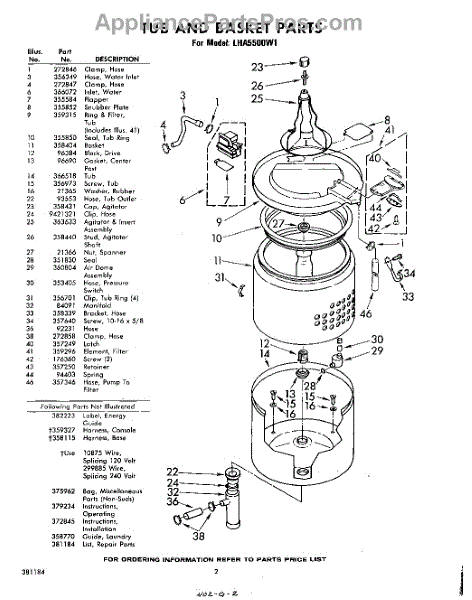 Parts for Whirlpool LHA5500W1: 02 - Tub And Basket , Lit / Optional Parts