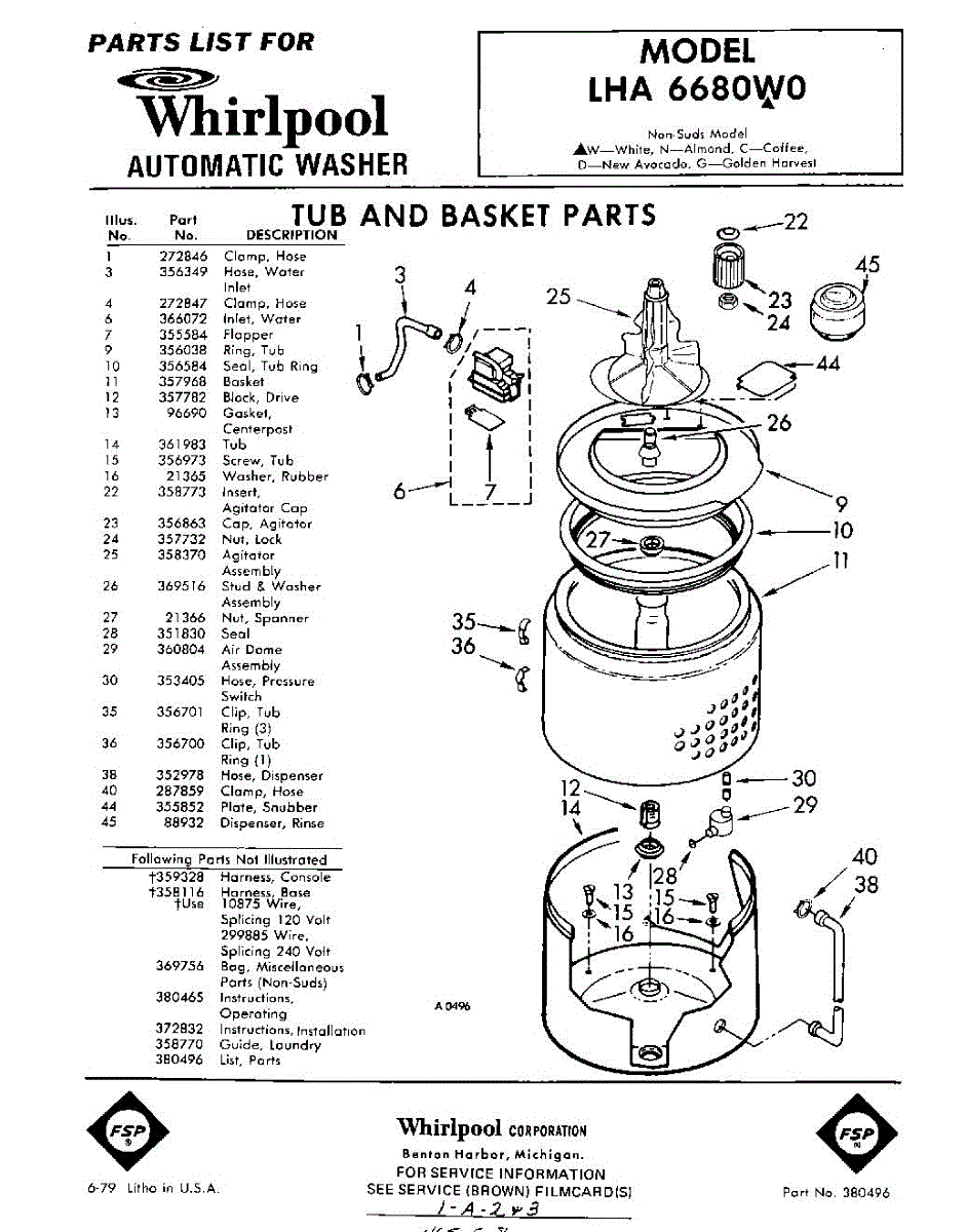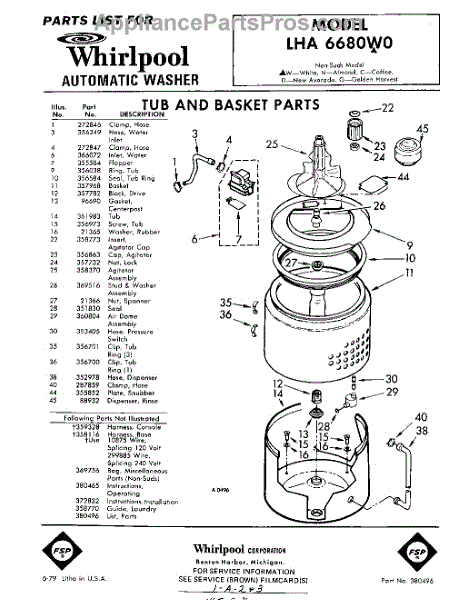 Parts for Whirlpool LHA6680W0: 01 - Tub And Basket , Lit / Optional Parts