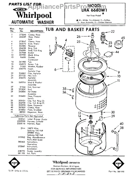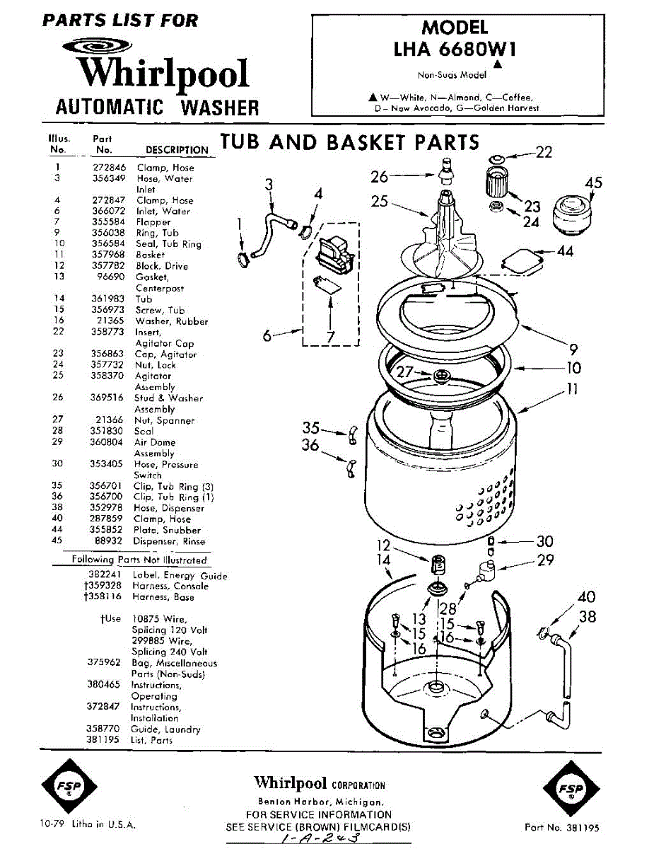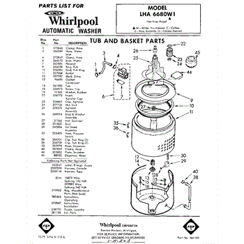 Parts for Whirlpool LHA6680W1: 01 - Tub And Basket , Lit / Optional Parts