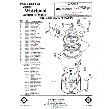 Parts for Whirlpool LHA7500W0: 01 - Tub And Basket , Lit / Optional Parts