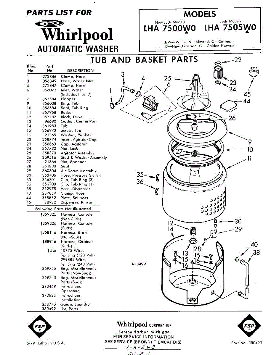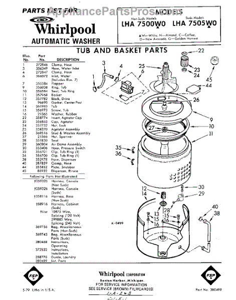 Parts for Whirlpool LHA7505W0: 01 - Tub And Basket , Lit / Optional Parts