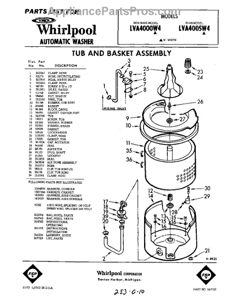 Parts for Whirlpool LVA4000W4: 01 - Tub And Basket , Lit / Optional Parts