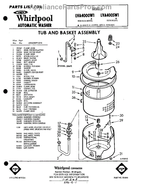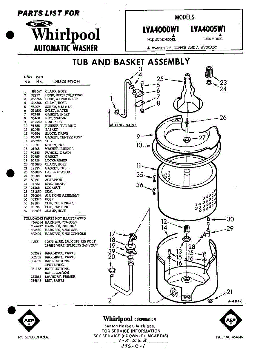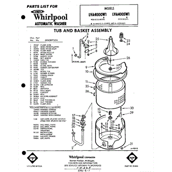Parts for Whirlpool LVA4005W1: 01 - Tub And Basket , Lit / Optional Parts