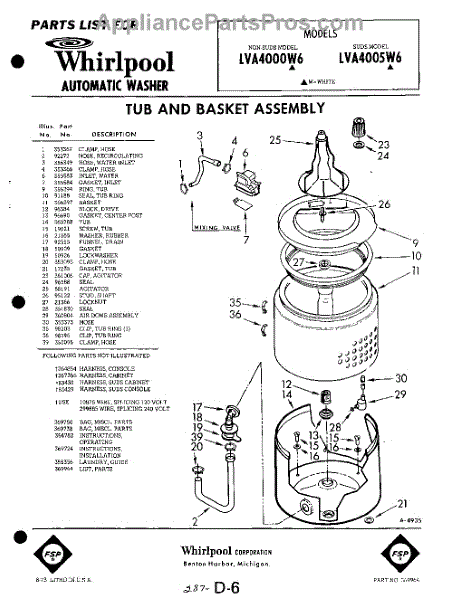 Parts for Whirlpool LVA4005W6: 01 - Tub And Basket , Lit / Optional Parts