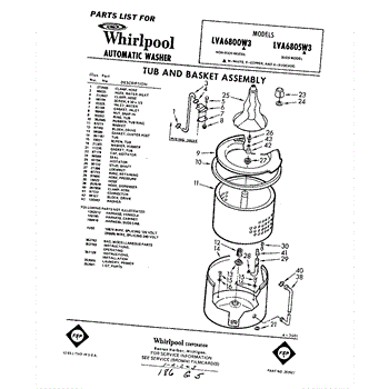 Parts for Whirlpool LVA6800W3: 01 - Tub And Basket , Lit / Optional Parts