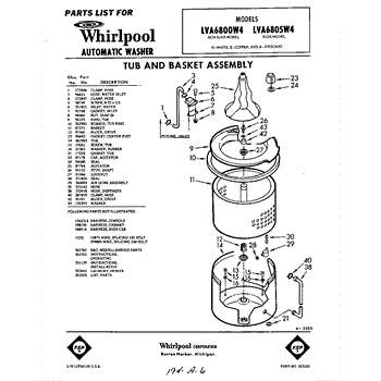 Parts for Whirlpool LVA6800W4: 01 - Tub And Basket , Lit / Optional Parts