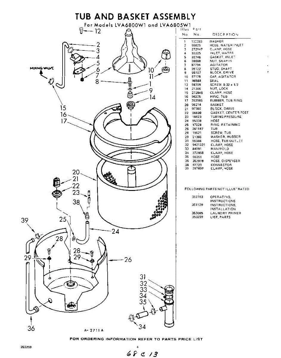 Parts for Whirlpool LVA6805W1: 04 - Tub And Basket , Lit / Optional Parts
