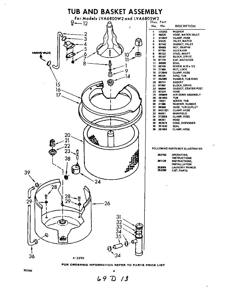 Parts for Whirlpool LVA6805W2: 04 - Tub And Basket , Lit / Optional Parts