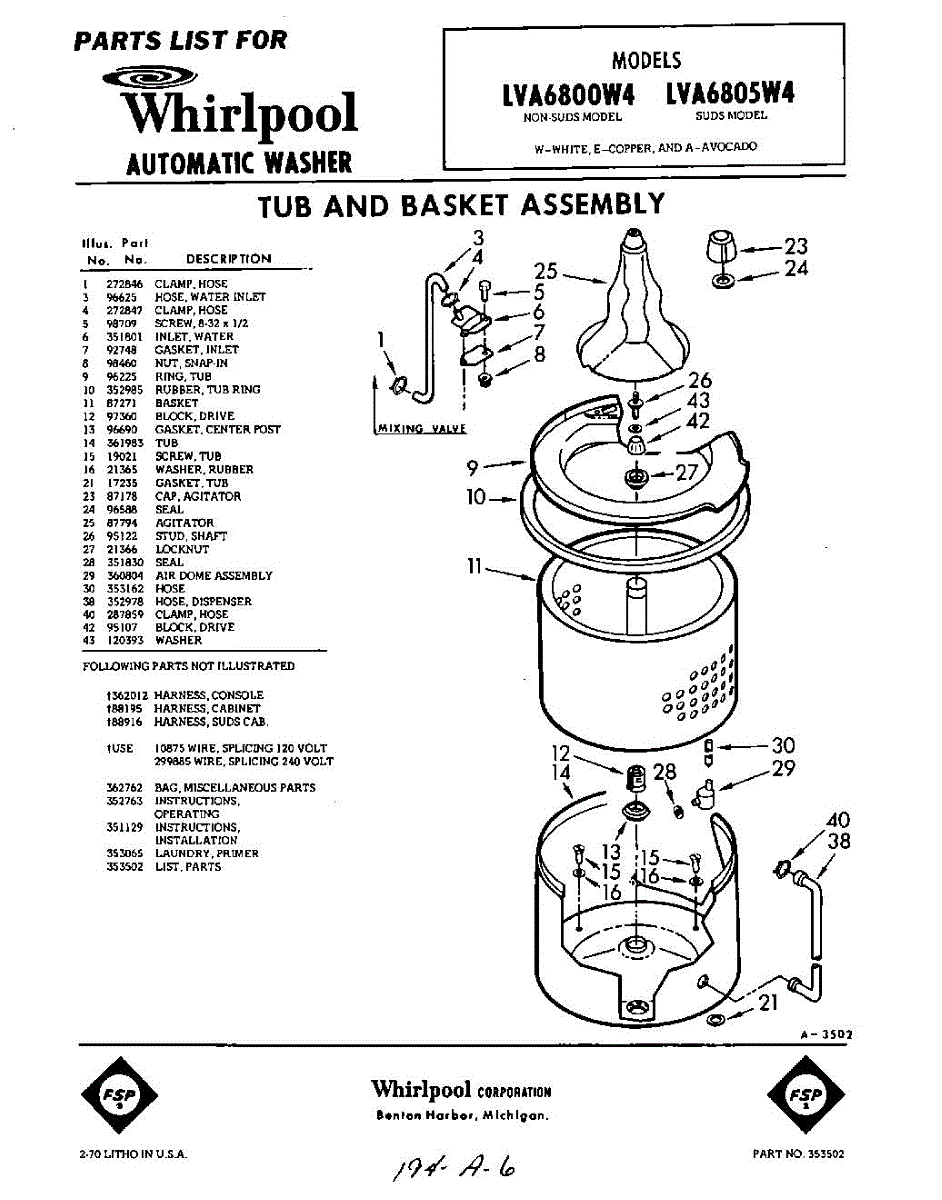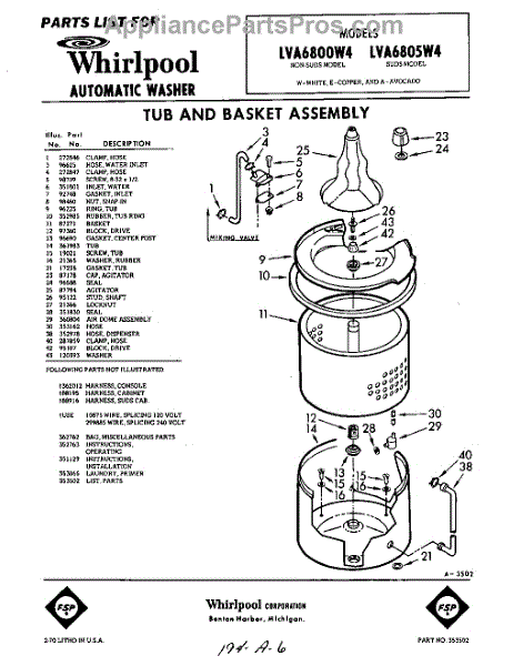 Parts for Whirlpool LVA6805W4: 01 - Tub And Basket , Lit / Optional Parts