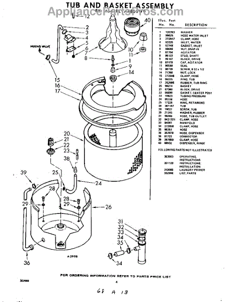 Parts for Whirlpool LVA6860W0: 04 - Tub And Basket , Lit / Optional Parts