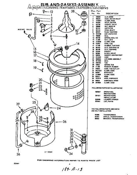 Parts for Whirlpool LVA7709W3: 04 - Tub And Basket , Lit / Optional Parts