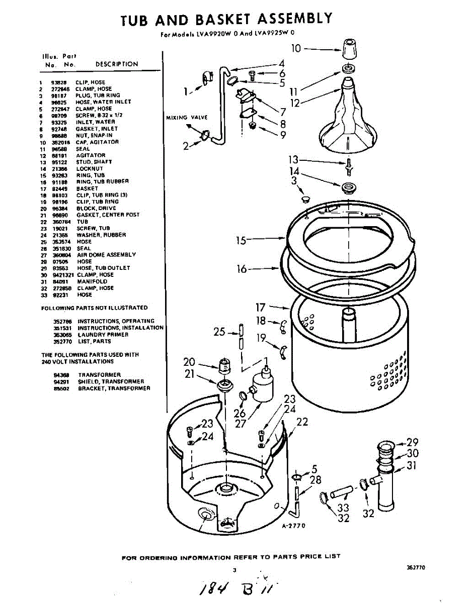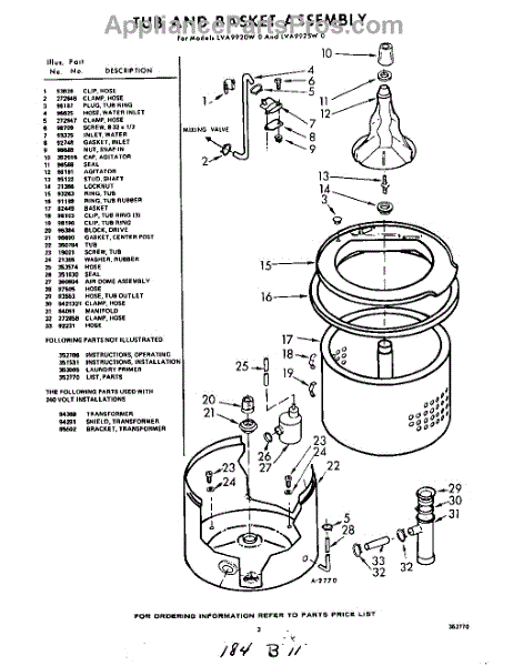 Parts for Whirlpool LVA9925W0: 03 - Tub And Basket , Lit / Optional Parts