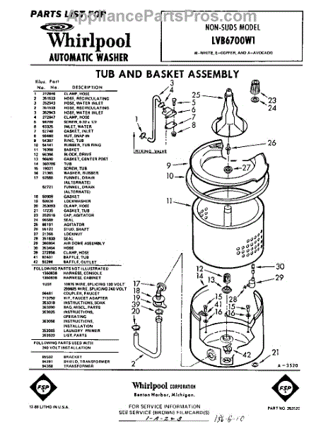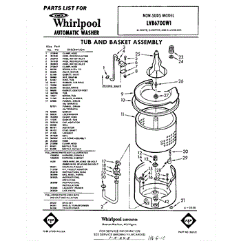 Parts for Whirlpool LVB6700W1: 01 - Tub And Basket , Lit / Optional Parts