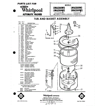 Parts for Whirlpool LWA5304W2: 01 - Tub And Basket, Lit / Optional Parts