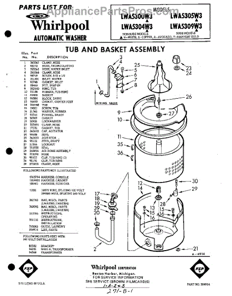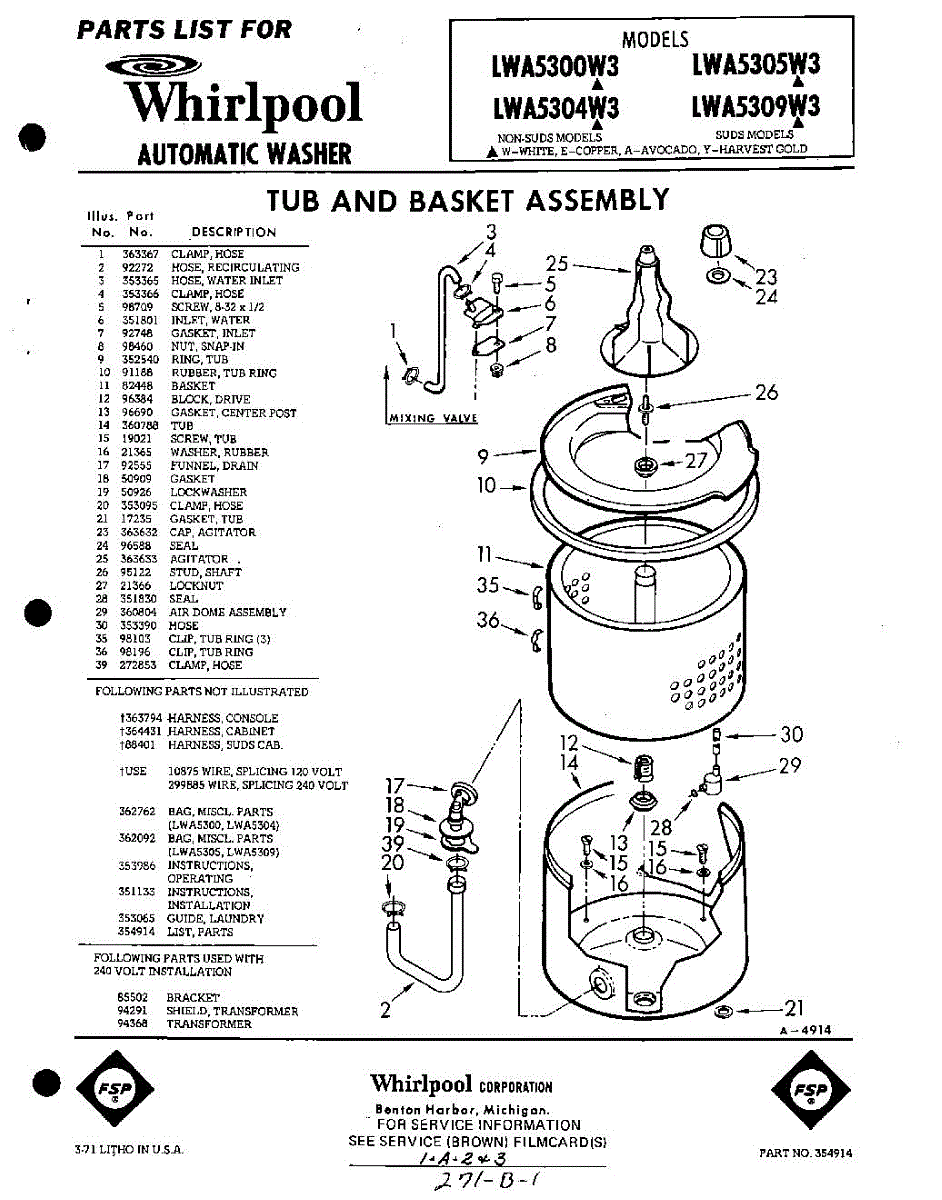 Parts for Whirlpool LWA5304W3: 01 - Tub And Basket, Lit / Optional Parts