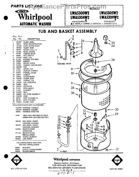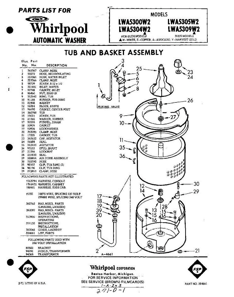 Parts for Whirlpool LWA5305W2: 01 - Tub And Basket, Lit / Optional Parts