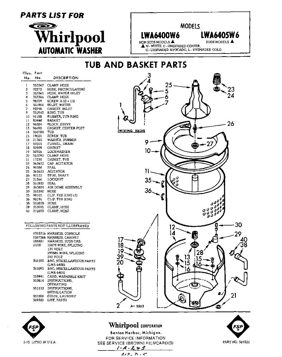 Parts for Whirlpool LWA6400W6: 01 - Tub And Basket , Lit / Optional Parts