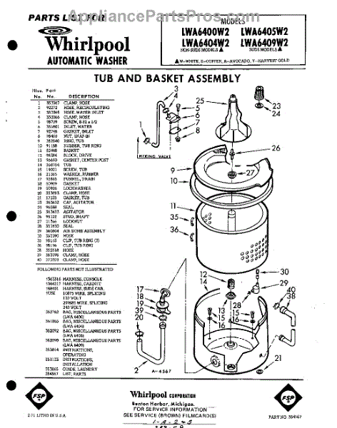 Parts for Whirlpool LWA6409W2: 01 - Tub And Basket , Lit / Optional Parts