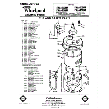 Parts for Whirlpool LWA6409W4: 01 - Tub And Basket , Lit / Optional Parts