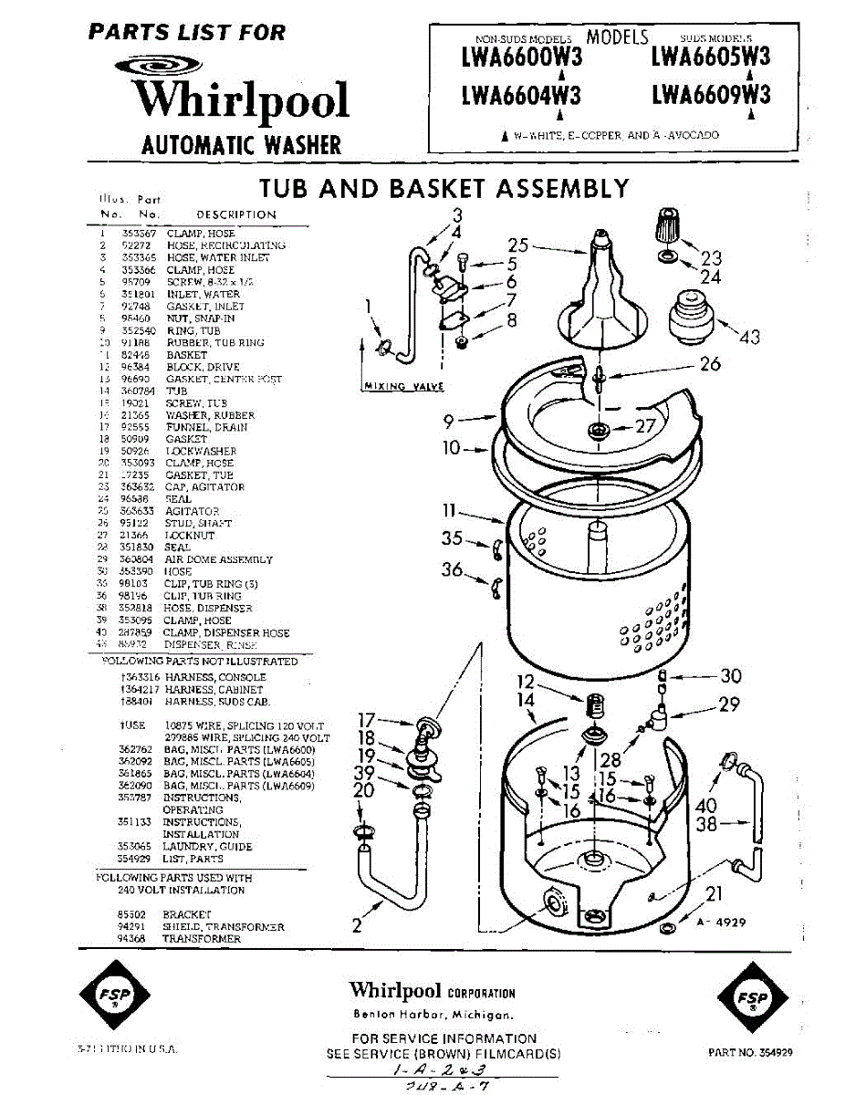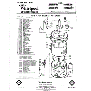 Parts for Whirlpool LWA6605W3: 01 - Tub And Basket , Lit / Optional Parts