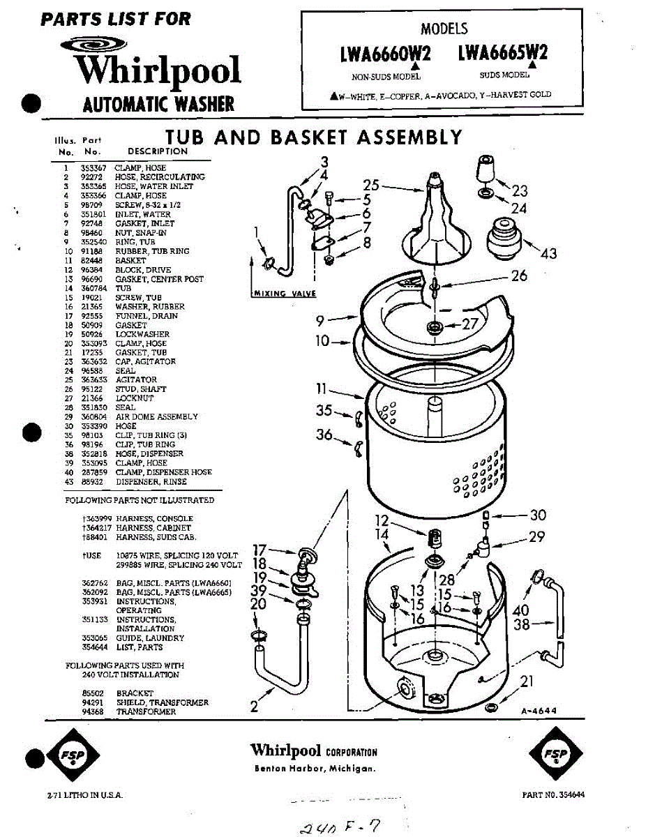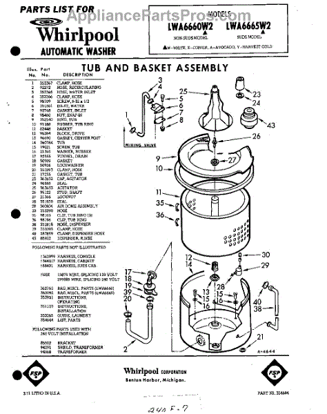 Parts for Whirlpool LWA6660W2: 01 - Tub And Basket , Lit / Optional Parts