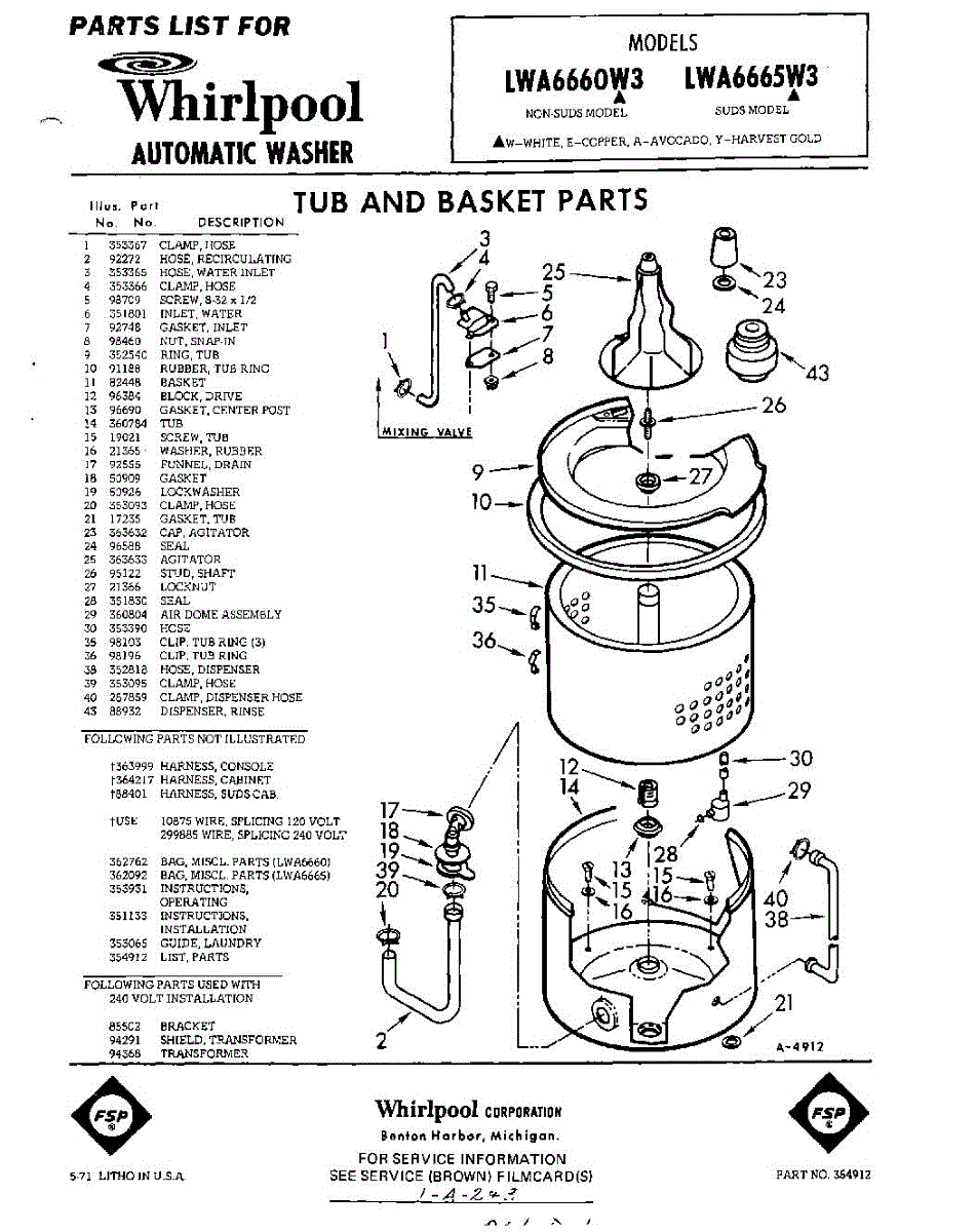 Parts for Whirlpool LWA6660W3: 01 - Tub And Basket , Lit / Optional Parts