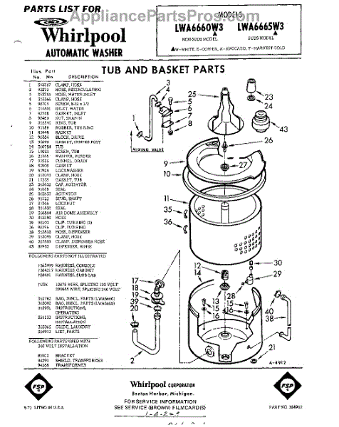 Parts for Whirlpool LWA6665W3: 01 - Tub And Basket , Lit / Optional Parts