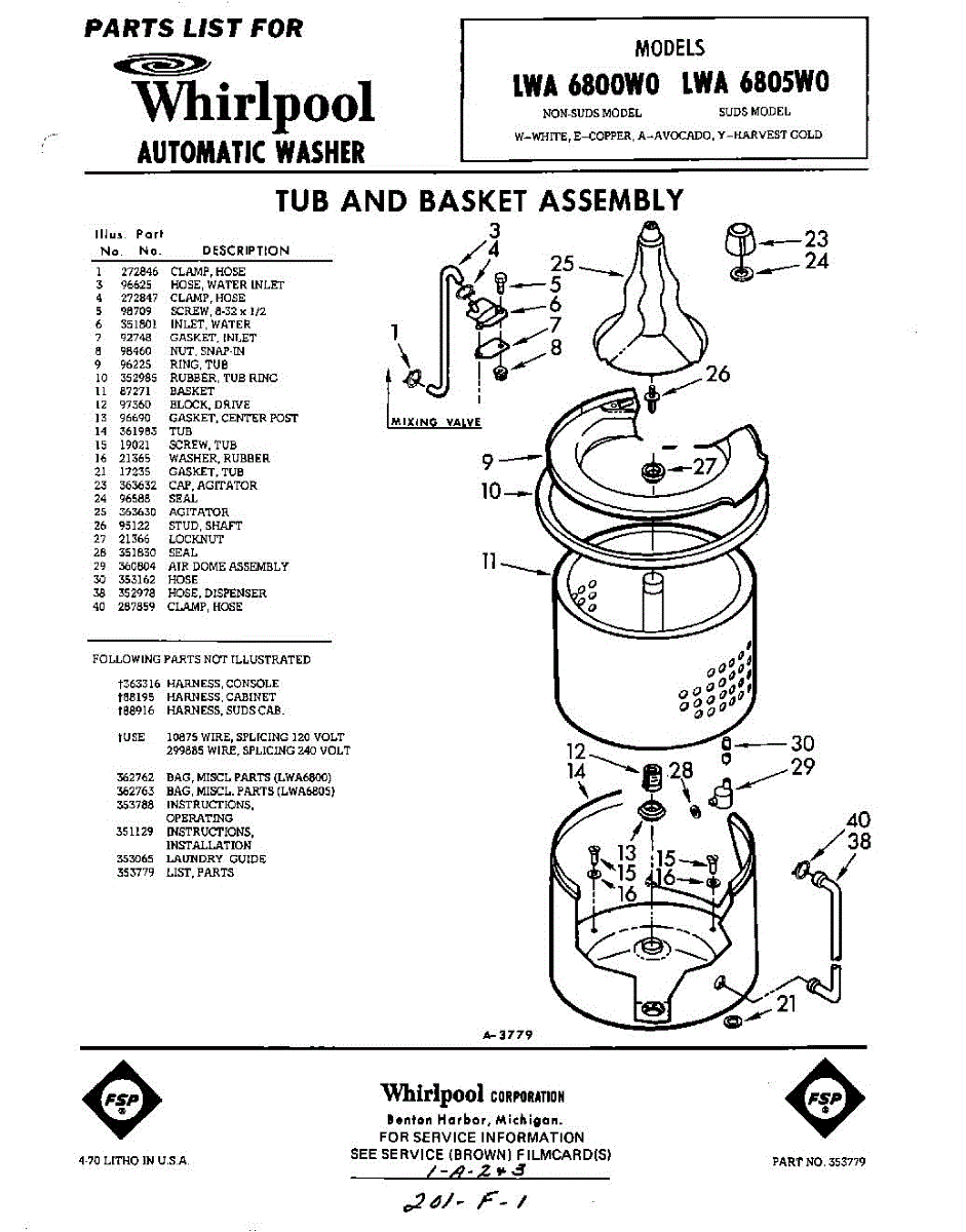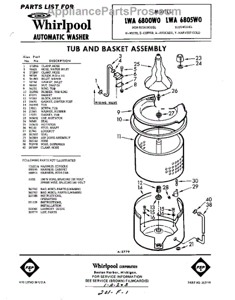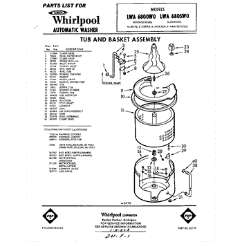 Parts for Whirlpool LWA6805W0: 01 - Tub And Basket , Lit / Optional Parts