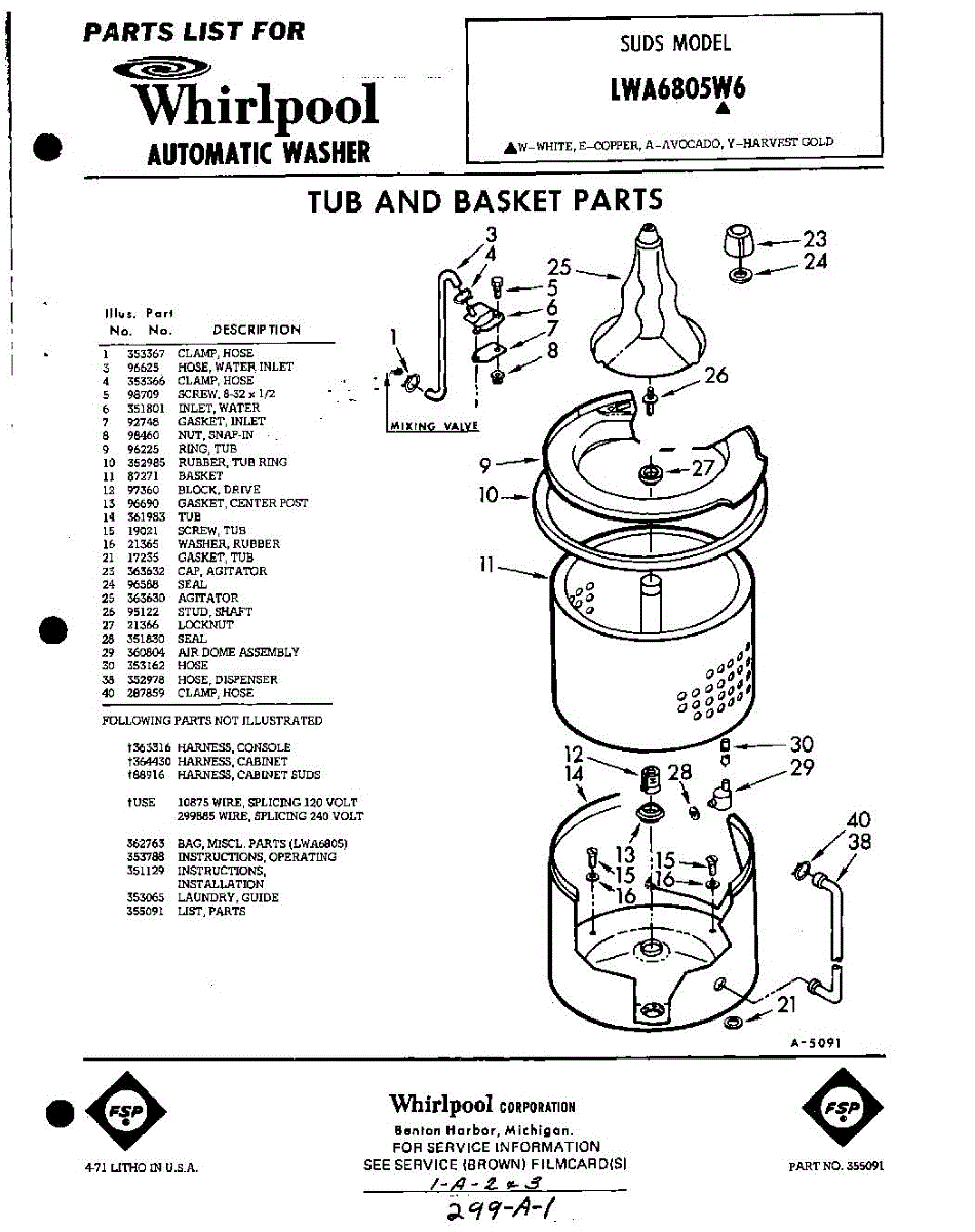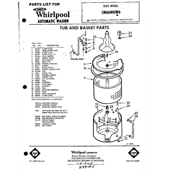 Parts for Whirlpool LWA6805W6: 01 - Tub And Basket , Lit / Optional Parts