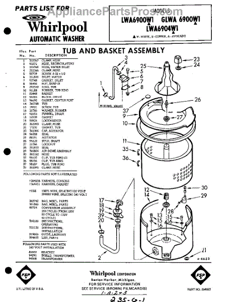 Parts for Whirlpool LWA6900W1: 01 - Tub And Basket , Lit / Optional Parts