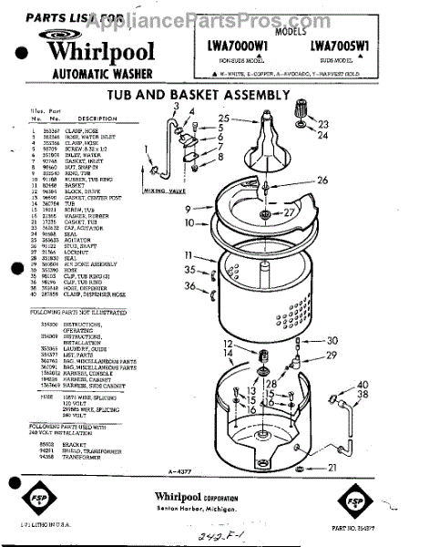 Parts for Whirlpool LWA7000W1: 01 - Tub And Basket , Lit / Optional Parts