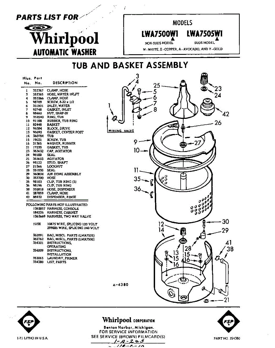 Parts for Whirlpool LWA7500W1: 01 - Tub And Basket , Lit / Optional Parts