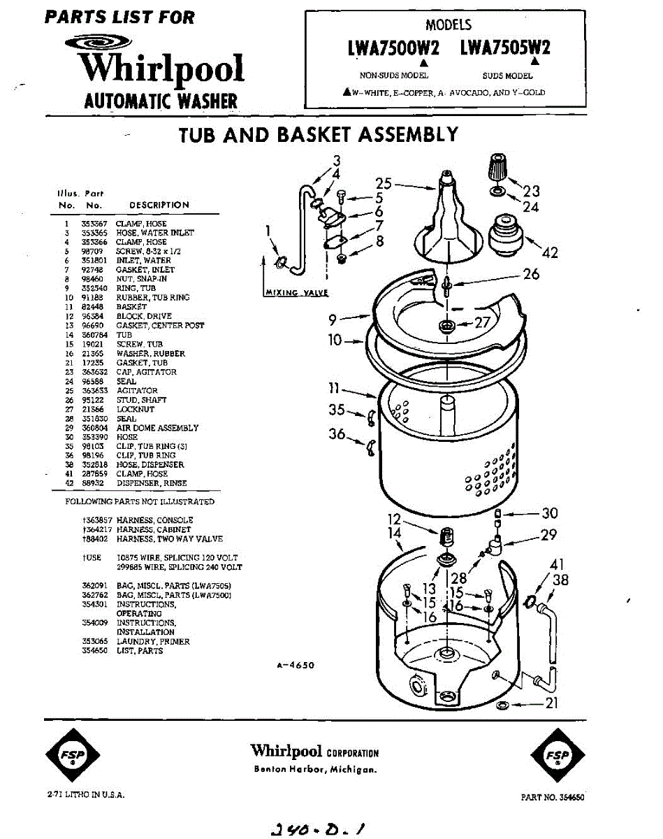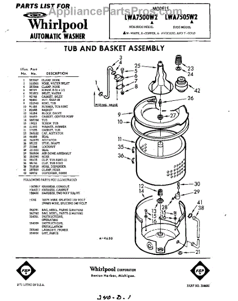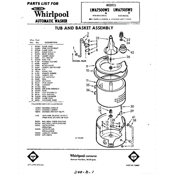 Parts for Whirlpool LWA7505W2: 01 - Tub And Basket , Lit / Optional Parts