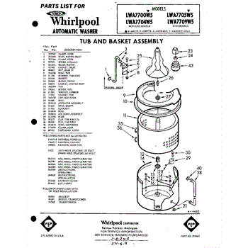 Parts for Whirlpool LWA7700W5: 01 - Tub And Basket, Lit / Optional Parts