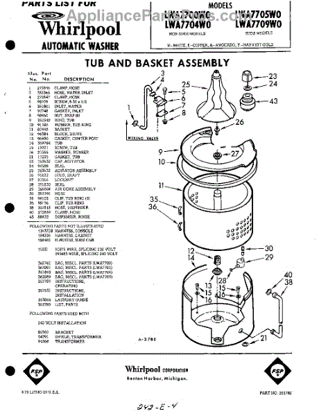 Parts for Whirlpool LWA7709W0: 01 - Tub And Basket , Lit / Optional Parts
