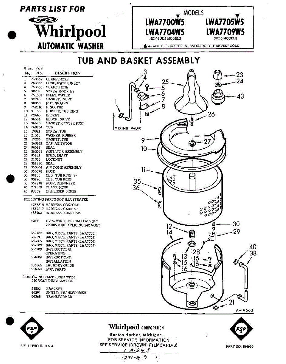 Parts for Whirlpool LWA7709W5: 01 - Tub And Basket, Lit / Optional Parts