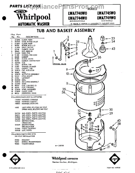 Parts for Whirlpool LWA7740W0: 01 - Tub And Basket , Lit / Optional Parts