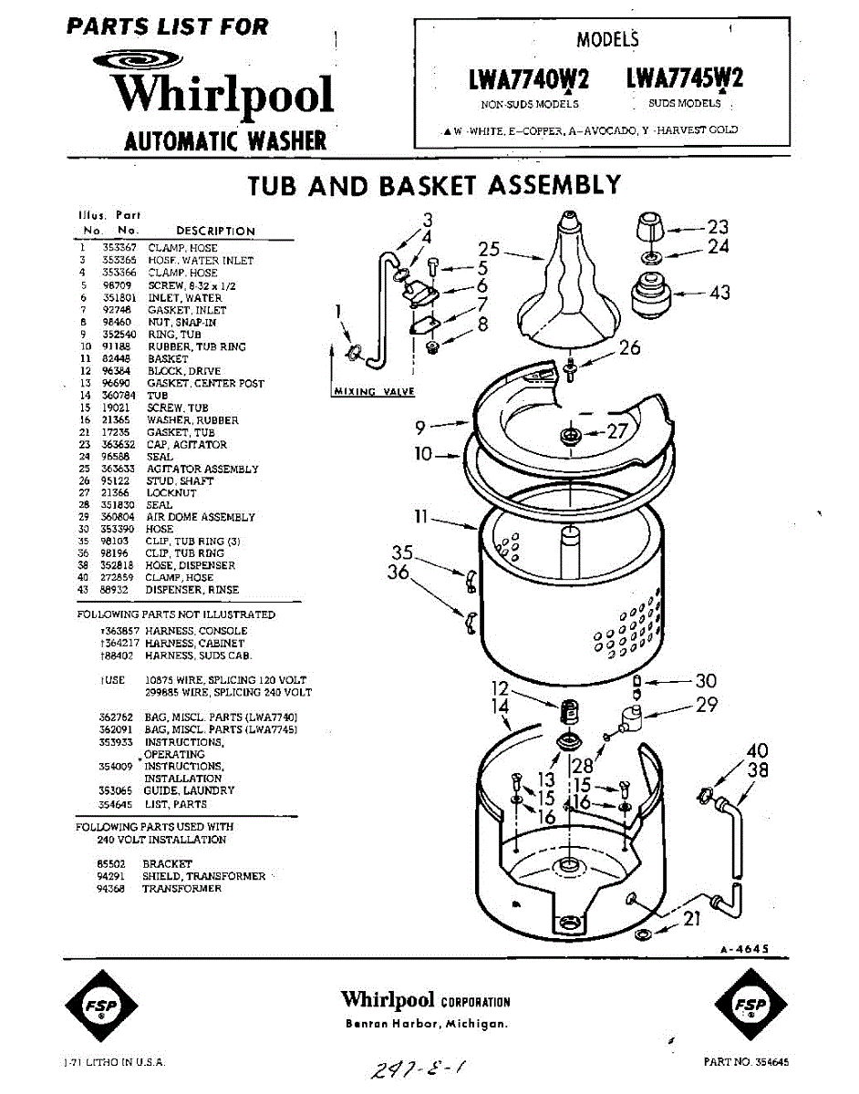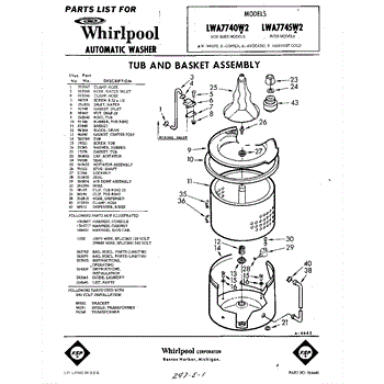 Parts for Whirlpool LWA7740W2: 01 - Tub And Basket , Lit / Optional Parts