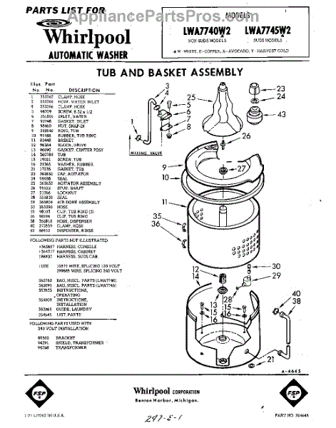 Parts for Whirlpool LWA7745W2: 01 - Tub And Basket , Lit / Optional Parts