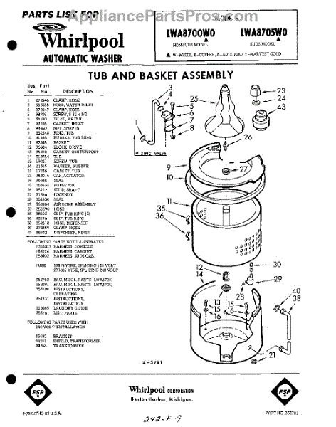 Parts for Whirlpool LWA8705W0: 01 - Tub And Basket , Lit / Optional Parts