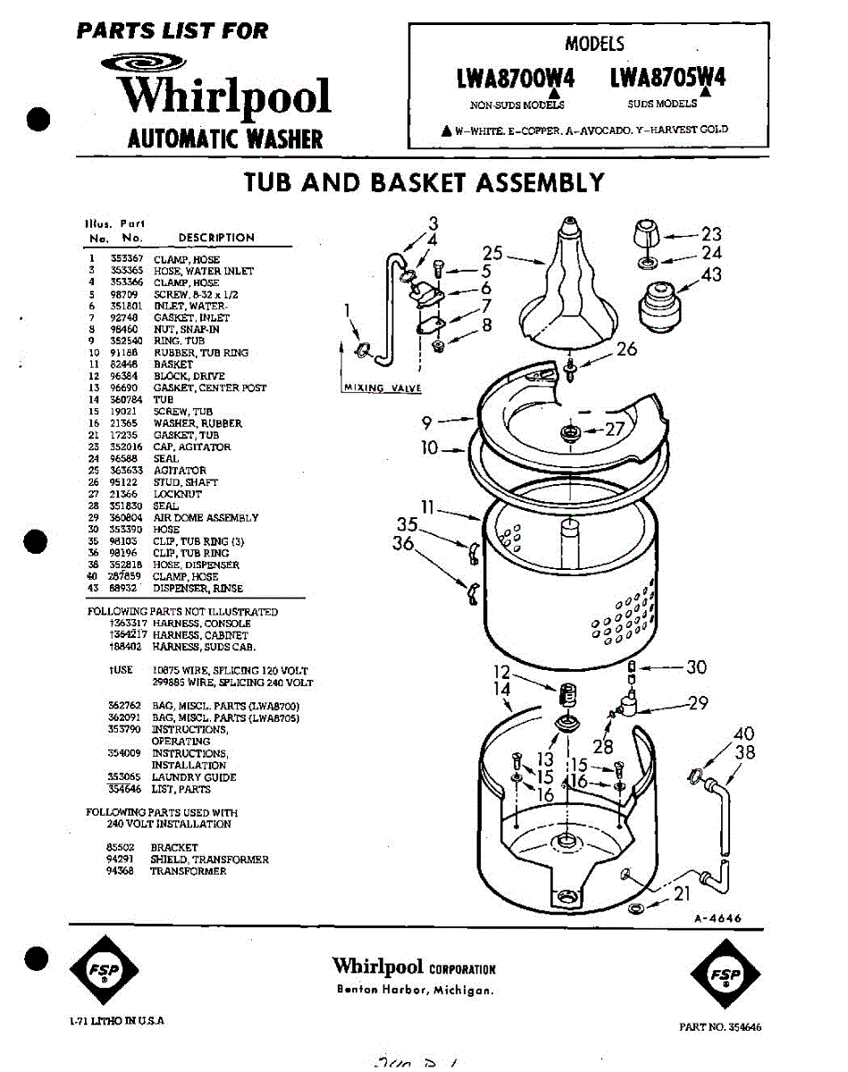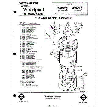 Parts for Whirlpool LWA8705W4: 01 - Tub And Basket , Lit / Optional Parts