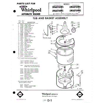 Parts for Whirlpool LWA8705W5: 01 - Tub And Basket , Lit / Optional Parts