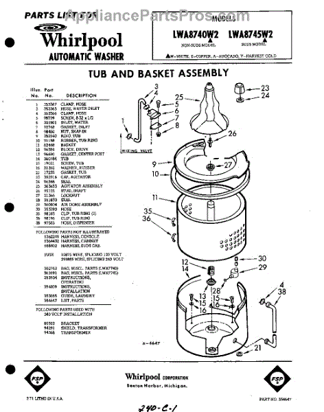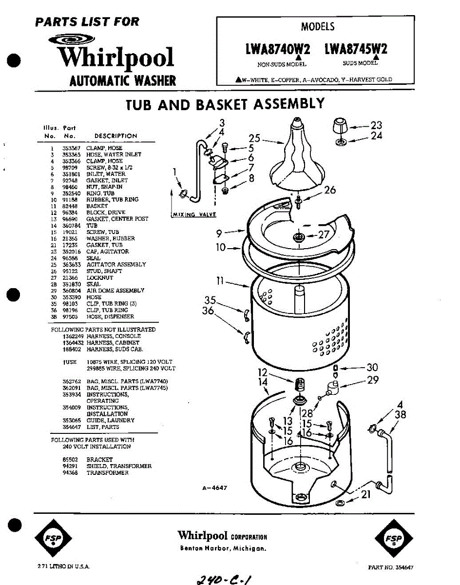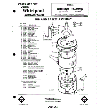 Parts for Whirlpool LWA8745W2: 01 - Tub And Basket , Lit / Optional Parts