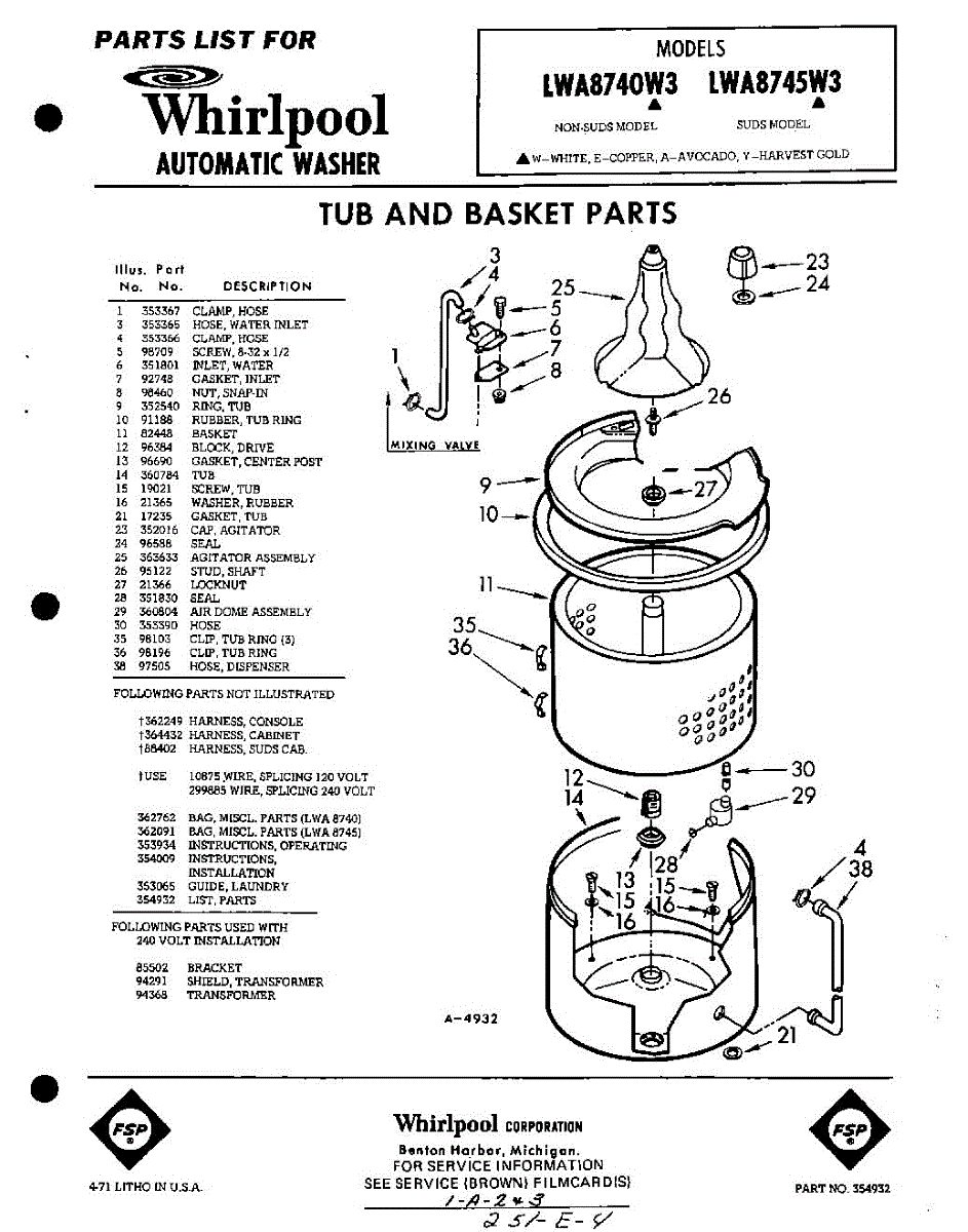 Parts for Whirlpool LWA8745W3: 01 - Tub And Basket , Lit / Optional Parts