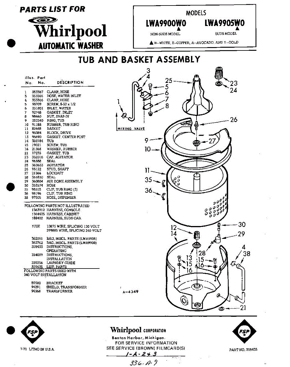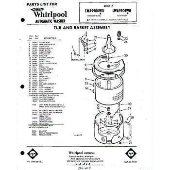 Parts for Whirlpool LWA9905W0: 01 - Tub And Basket , Lit / Optional Parts